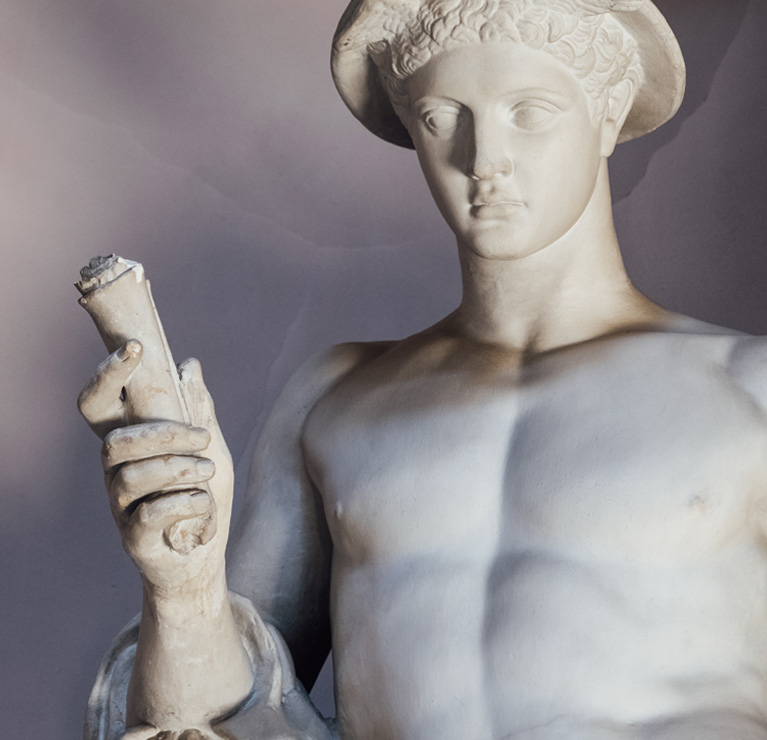 Composed sometime between the 1430s and 1450s, Donatello’s bronze David represents a series. Provocatively jutting hip as he trium